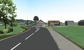 Vor der bestehenden Engstelle beim alten Sennhaus schwenkt die neue